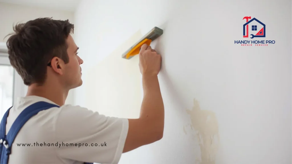 If moisture is behind the paint failure, it must be dealt with before any new decoration begins. This may involve fixing a plumbing fault, resealing a bathroom, improving ventilation, or dealing with a penetrating damp problem in the building fabric. Applying new paint to a wall that is still damp or still receiving moisture from behind will produce exactly the same failure in a shorter time.
